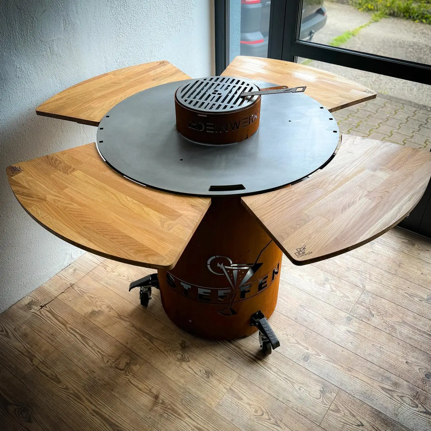 Ulepsz swoje grillowanie planchowe z doczepianą deską BAR! Ten solidnie wykonany, drewniany stolik montuje się w mgnieniu oka, dodając Twojemu grillowi Grillfass czy Steckfass nie tylko elegancji, ale i praktyczności. BAR to idealne miejsce na małe naczynia, przybory do grillowania czy przyprawy – wszystko, czego potrzebujesz, będzie zawsze pod ręką.Ułatwia organizację, zwiększa wygodę i bezpieczeństwo, pozwalając Ci w pełni skupić się na pasji grillowania. Dla miłośników kulinarnych przygód BAR to nie tylko dodatek, ale integralna część doświadczenia, która podkreśla styl i funkcjonalność Twojego grilla. Ciesz się każdym momentem przy grillu z BAR-em, który sprawi, że przygotowywanie posiłków stanie się jeszcze przyjemniejsze!Uwaga, deskę należy dobrać do posiadanego modelu grilla.