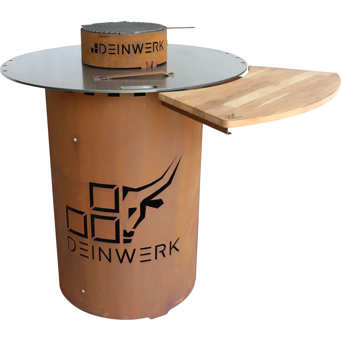 Grillfass od DEINWERK to kwintesencja minimalistycznego designu i maksymalnej funkcjonalności – kompaktowa kuchnia ogrodowa, która zapewni Ci radość z grillowania o każdej porze roku. Wykonany z wysokiej jakości stali Corten z 8-milimetrową płytą planchową (S355), ten grill łączy trwałość z wszechstronnością, oferując niezrównane możliwości kulinarne.